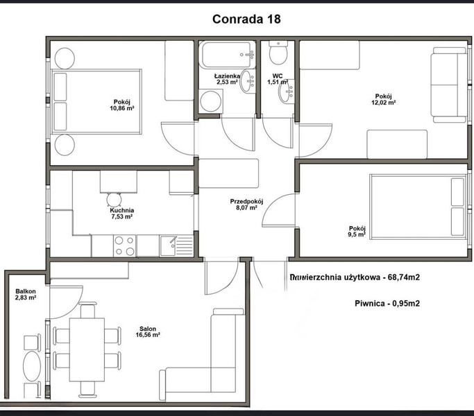 Lokal o powierzchni prawie 69 metrów, usytuowane na 7 piętrze na którym są tylko dwa mieszkania, nowa winda z samego parteru budynku.
