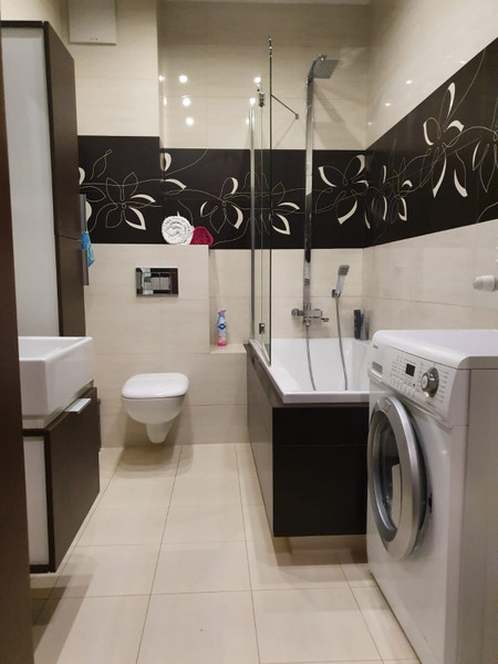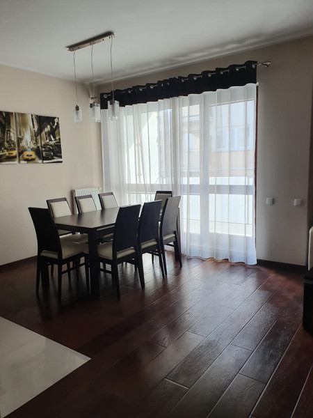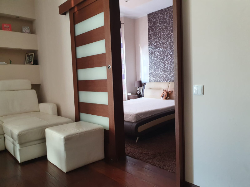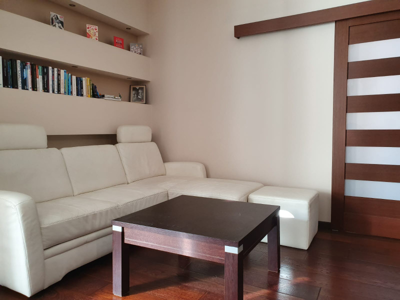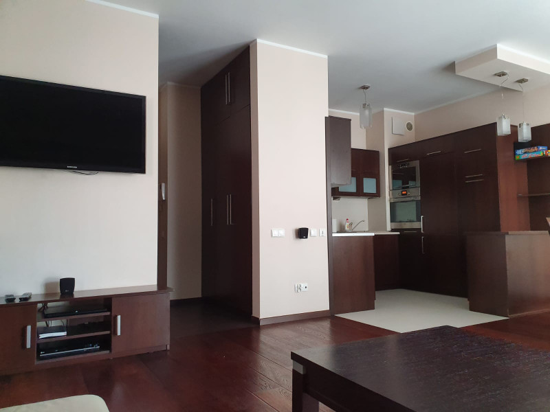 Mieszkanie jest umeblowane i wyposażone (pralka, zmywarka, piekarnik, lodówka, telewizor), wykończone w wysokim standardzie, z meblami robionymi na wymiar. Znajduje się na osiedlu strzeżonym z monitoringiem i całodobową ochroną. W budynku zgaduje się winda. Budynek wybudowany w 2007 roku.