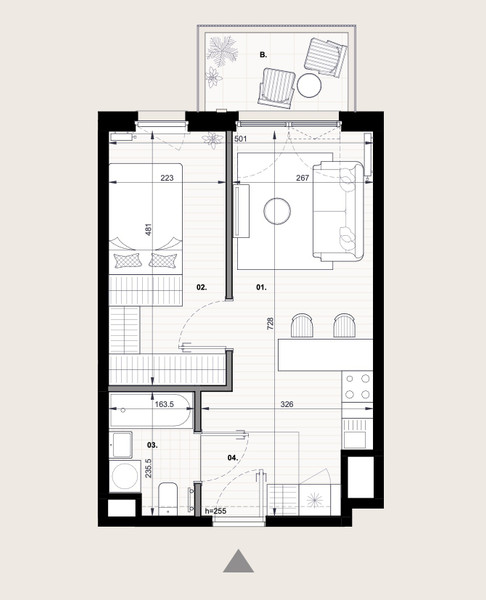 Budynek wyróżnia się kaskadową formą architektoniczną, która harmonijnie wpisuje się w otoczenie, nawiązując do modernistycznej tradycji Mokotowa. Do mieszkań przynależą przestronne balkony, tarasy oraz prywatne ogródki, stanowiące idealne miejsca do relaksu na świeżym powietrzu.