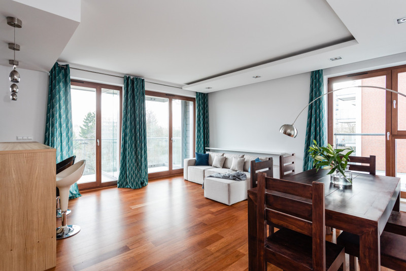 Wysokie, klimatyzowane mieszkanie o funkcjonalnym rozkładzie, przestronne, pięknie doświetlone, z dużym balkonem, przy parku Pole Mokotowskie.