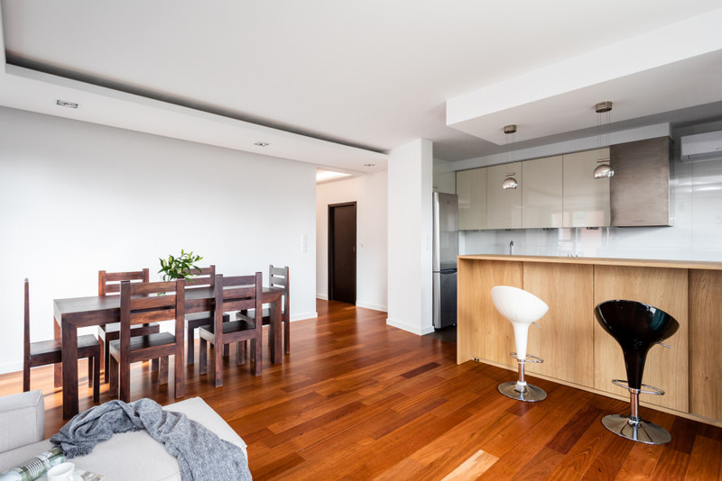 Ponadczasowy, świeży design oparty na trzech podstawowych kolorach (biel, czerń i brąz) i naturalnych materiałach (drewno i kamień). Mieszkanie stanowi doskonałą bazę do wprowadzenia własnego wystroju. Poprzez zmianę kilku dodatków (np. zasłon), czy wprowadzenie ulubionych kolorów, można dokonywać transformacji i dostosowywać wnętrze do swojego stylu, czy aktualnych potrzeb.