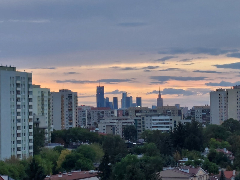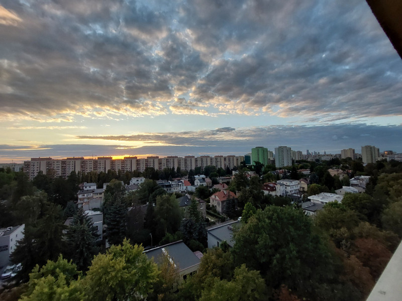 Fantastyczne, panoramiczne widoki na Warszawę, zachody i wschody słońca, widać również centrum i Pałac Kultury. Ze względu na wysokie piętro - cisza i dużo światła.