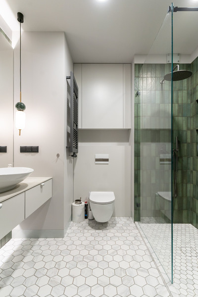 - dwie łazienki (5,17 m2, 4,43 m2),