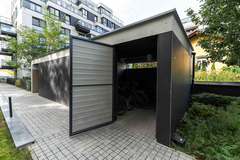 Na terenie inwestycji – zamykane pomieszczenie garażowe na rowery – do dyspozycji mieszkańców.
