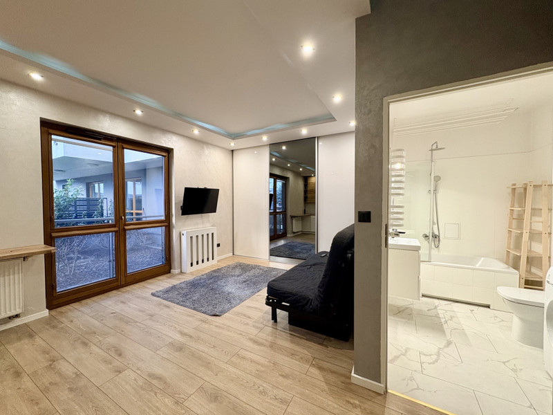 The apartment is located on the ground floor of an elegant apartment building from 2007. The windows overlook a quiet green patio, refreshed in 2025. This is an ideal offer for a single person, a couple, a student, or as a secure capital investment for rental. The apartment is quiet, with windows facing the sunny south.