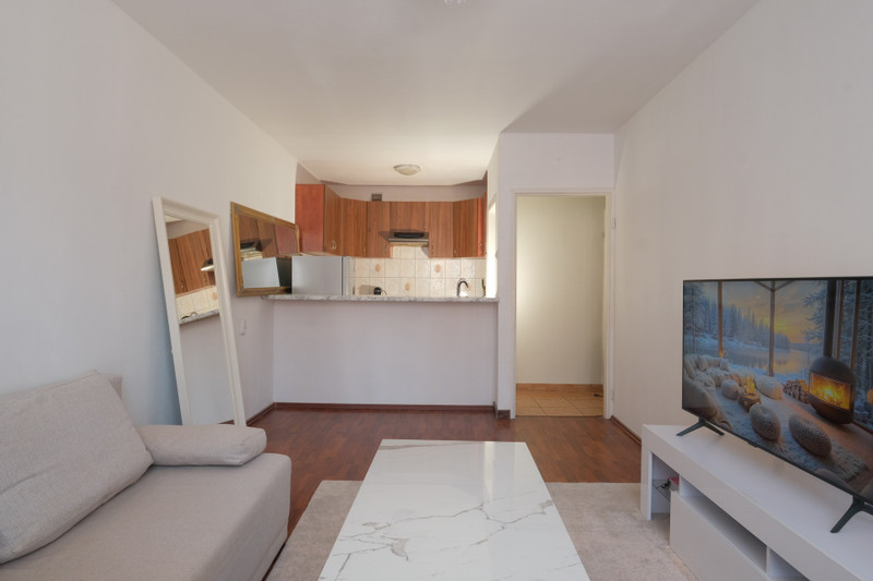 Mieszkanie 2 pokoje: przestronny pokój dzienny z aneksem kuchennym oraz sypialnia.