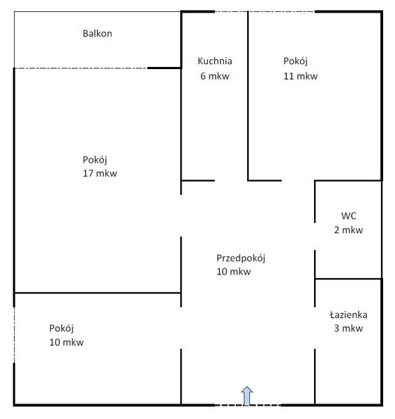 Bardzo dobry rozkład umożliwiający wygodną aranżację powierzchni: 3 ustawne pokoje, z osobną kuchnią, łazienką i toaletą.