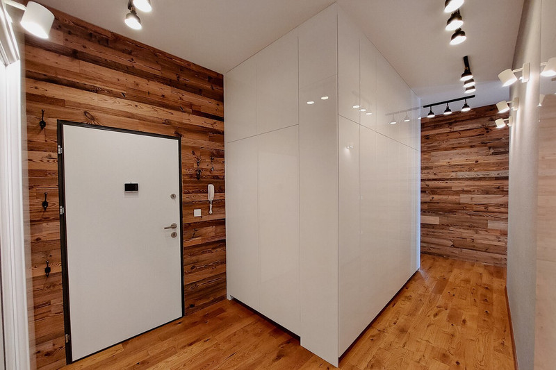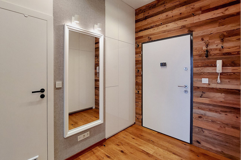 Hol z dużym lustrem i ukrytą przestrzenią do przechowywania