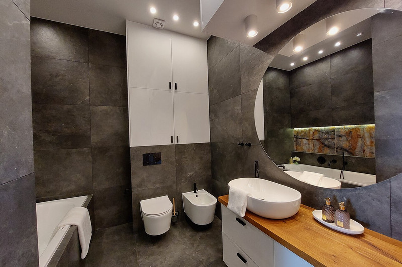 2 łazienki: jedna z prysznicem walk-in, druga z wanną i bidetem
