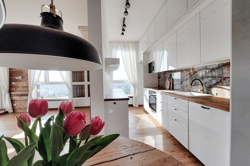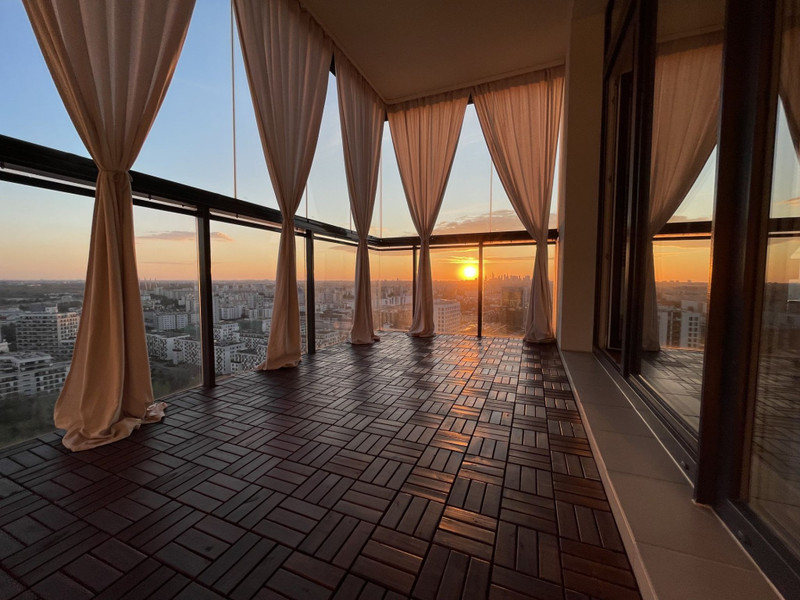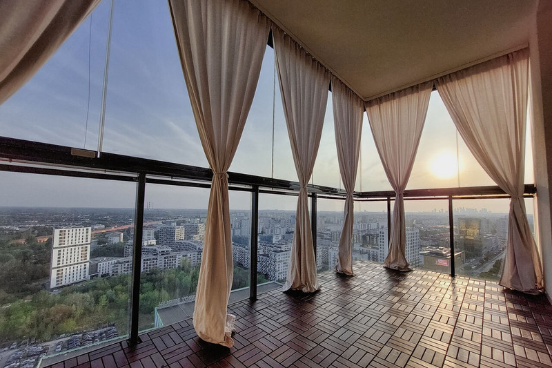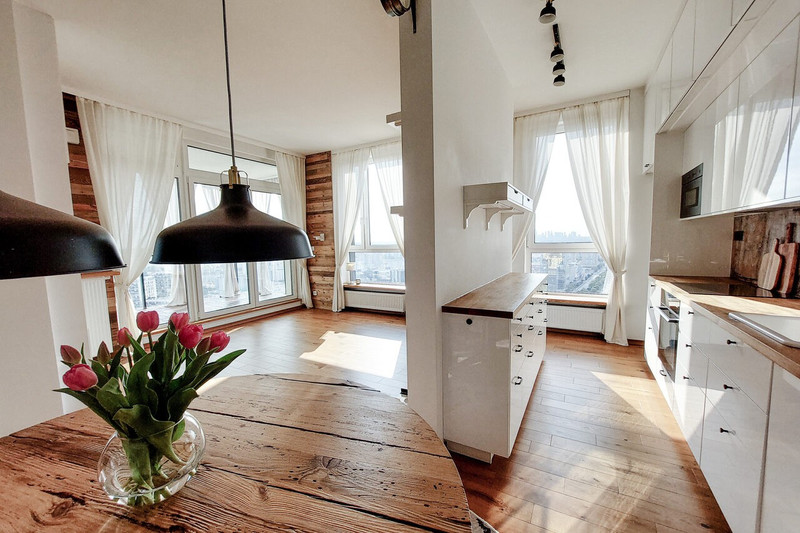 Cała przestrzeń skąpana jest w dziennym świetle – dzięki 2,5-metrowym oknom i ekspozycji na południowy zachód. To tu złote promienie słońca budzą Cię rano i to tutaj wieczorami patrzysz, jak miasto rozbłyska światłami – z filiżanką herbaty lub kieliszkiem wina w dłoni, w swojej przeszklonej oranżerii, zawieszonej między niebem a panoramą Warszawy. To tu przywitasz Nowy Rok z rozbłyskiem fajerwerków pod stopami, które są niezapomnianym doznaniem. To z tych okien doświadczysz najpiękniej zmieniających się czterech pór roku.