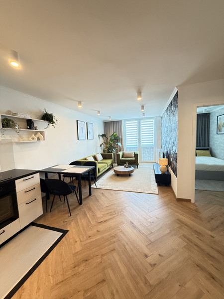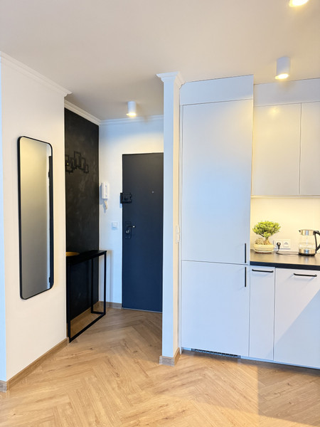 Wnętrze zostało wykończone w jasnym, nowoczesnym stylu, z dbałością o detale. Mieszkanie jest w stanie idealnym, w pełni gotowe do zamieszkania – bez potrzeby remontu.