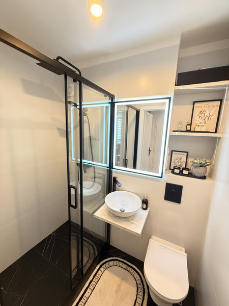 • nowoczesna łazienka z prysznicem.