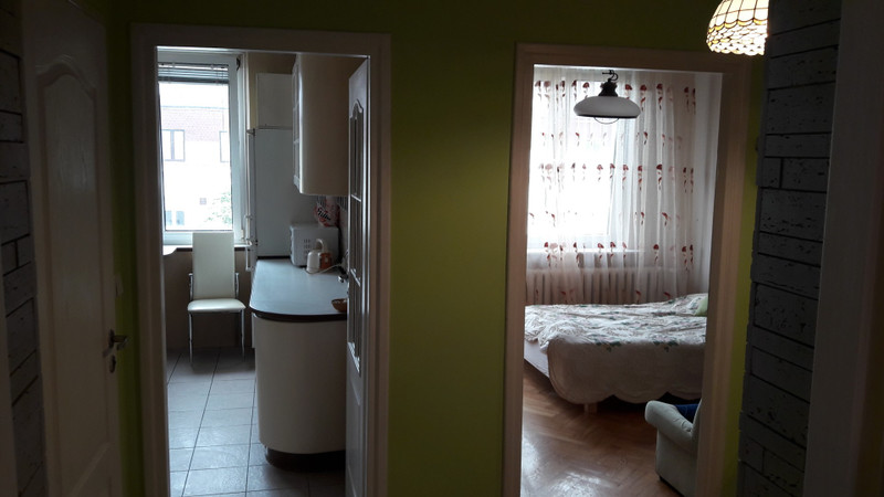Mieszkanie rozkładowe, funkcjonalne i gotowe do zamieszkania, wymagające odświeżenia lub niewielkiego remontu. Okna salonu wychodzą na wewnętrzny zielony skwer, okna sypialni i kuchni wychodzą na spokojną uliczkę, co zapewnia ciszę, przy jednoczesnej bezpośredniej bliskości przystanków autobusowych, tramwajowych i szybki dojazd do ścisłego centrum. Stacja metra w odległości 10 minut pieszo.