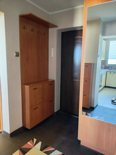 W mieszkaniu pozostają meble kuchenne, sprzęt AGD (zmywarka, piekarnik, lodówka), meble w przedpokoju i łazience.