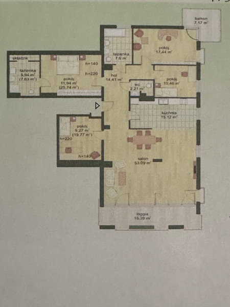• Sypialnia 2 (17 m²): Z własnym balkonem (7 m²).
