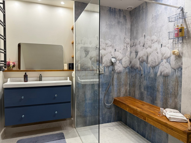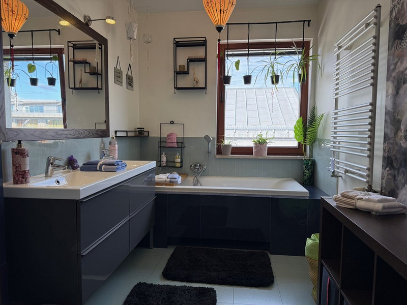 · Nowoczesne rozwiązania: prysznic „walk in” z dużą deszczownicą i drewnianą ławką, toaleta samomyjąca, oświetlenie LED, w kuchni zainstalowany rozdrabniacz odpadów, zmywarka, sprzęt AGD, funkcjonalna wyspa kuchenna, w pokoju biurowym ogromne dwustanowiskowe biurko z wygodnymi szafkami idealny do pracy zdalnej.