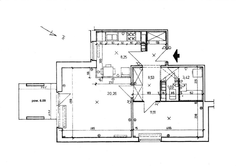 • salonu (20,26 m2) z dużymi oknami wychodzącymi na południe.