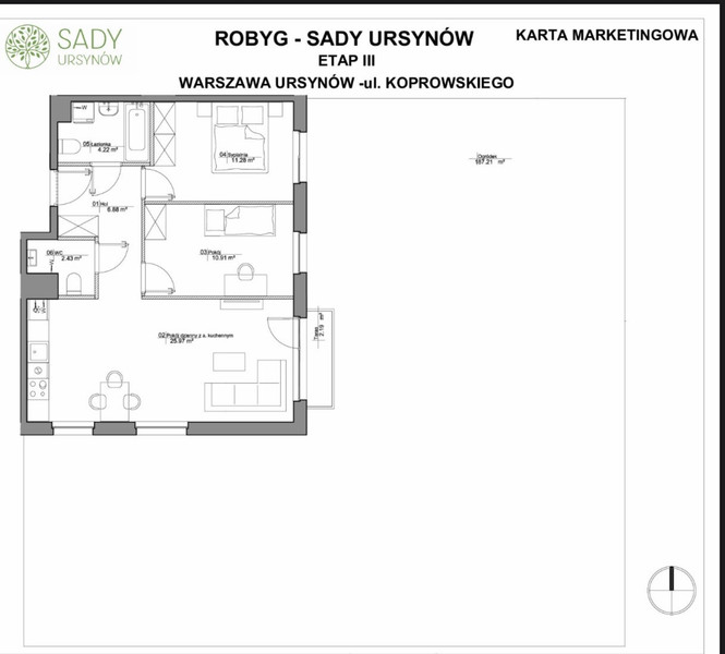 Na SPRZEDAŻ wyjątkowe, narożne mieszkanie o powierzchni 63 m² z prywatnym ogrodem aż 187 m², zlokalizowane na nowoczesnym osiedlu Sady Ursynów (ROBYG) przy ul. Koprowskiego.
