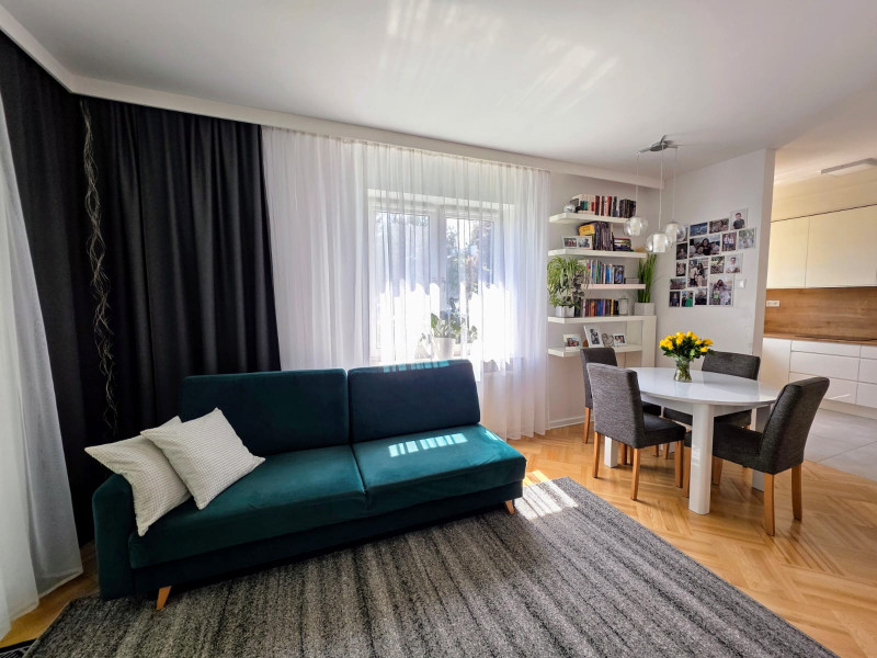 Na sprzedaż funkcjonalne i przytulne mieszkanie o powierzchni 70,2 m², położone na parterze w kameralnym budynku czterolokalowym, na zamkniętym osiedlu przy ul. Południowej w Warszawie.