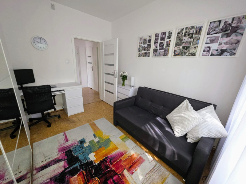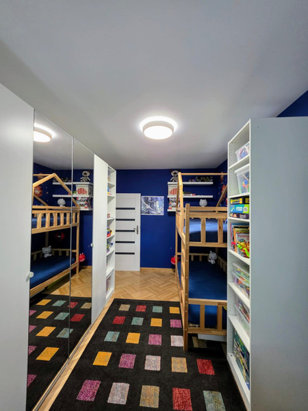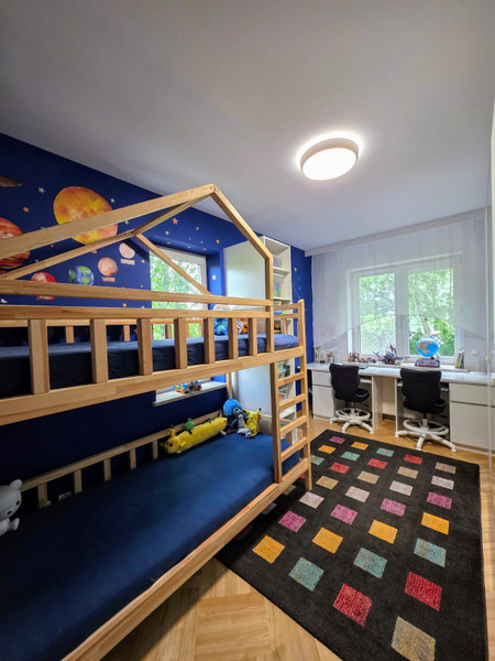 • 2 pokoi (aktualnie jeden to pokój dla dzieci, drugi to sypialnia z miejscem do pracy),