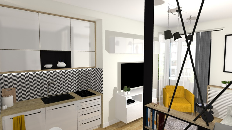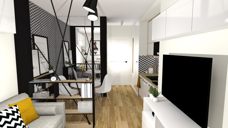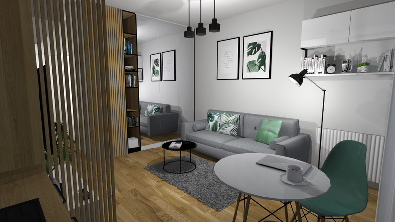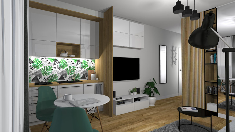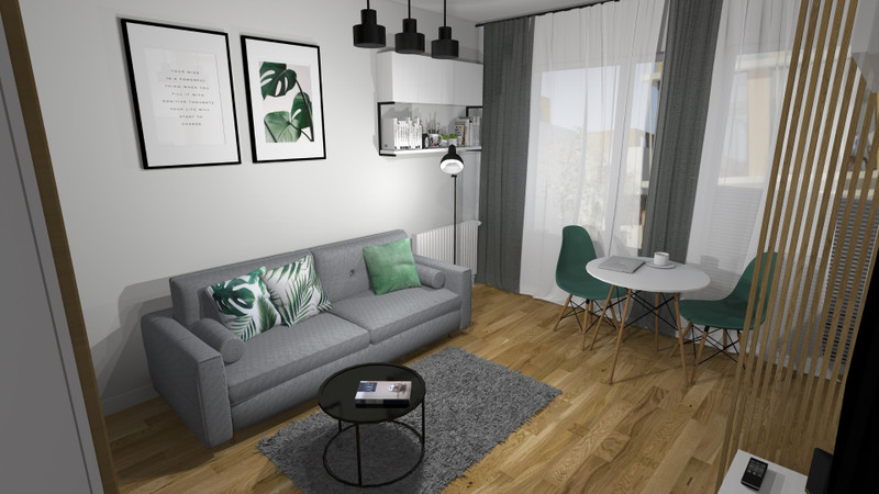 kawalerki znajdują się na parterze z ogródkiem z widokiem na ciche i zadbane patio. Osiedle wybudowane w 2018 r. Wizualizacje przestawiają 2 mikro-lokale każde nieco inaczej urządzone.