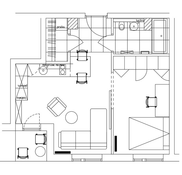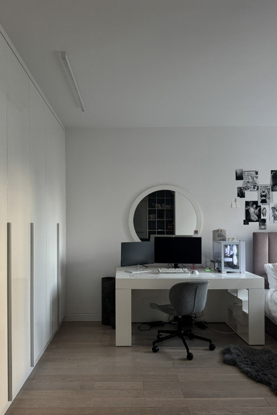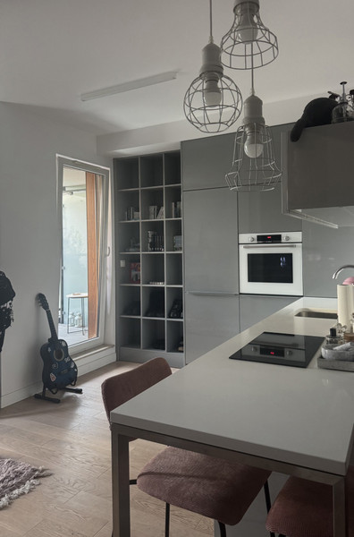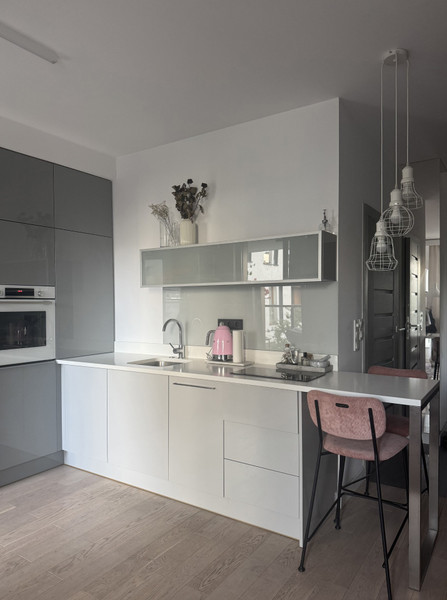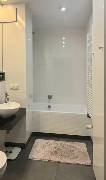 Loggia ma wykonaną podłogę podniesioną z drewnianych paneli. Łazienka z wanną . Nad umywalka ciąg szafek z lustrzanymi drzwiczkami .W sypialni pojemne szafy na całej ścianie. Oddzielona garderoba z pralką , wyposażona w drążki i szuflady. Podłoga w mieszkaniu drewniana, a w części wejściowej z płyt gresowych. Kuchnia w pełni wyposażona , blat kuchenny z białego kwarcu. Do zlewu kuchennego zamontowany młynek na odpadki.