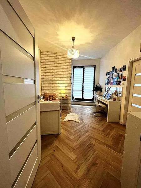 To doskonały wybór zarówno dla rodzin z dziećmi, jak i osób pracujących zdalnie – jedno z pomieszczeń pełni funkcję gabinetu/home office, oddzielonego od strefy dziennej.