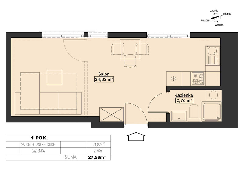 • możliwość wydzielenia sypialni – układ 2-pokojowy