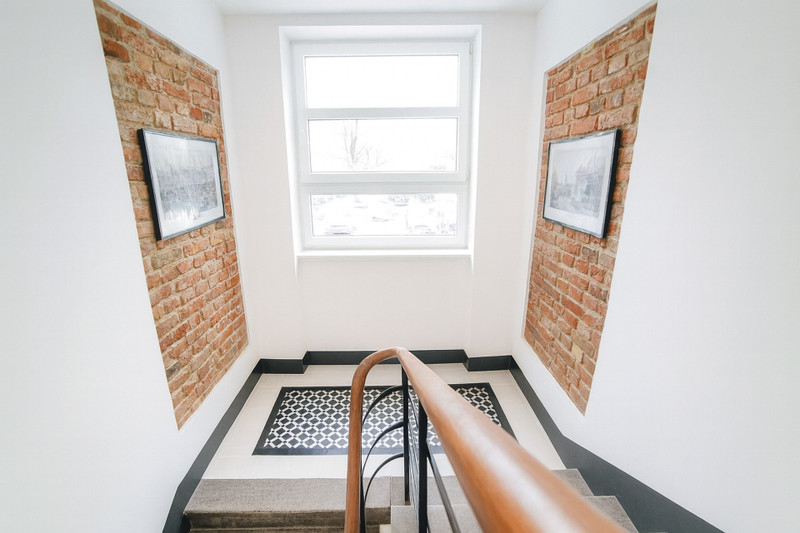 Kamienica po kompleksowej rewitalizacji – nowe instalacje, elegancka klatka schodowa, zadbane części wspólne.