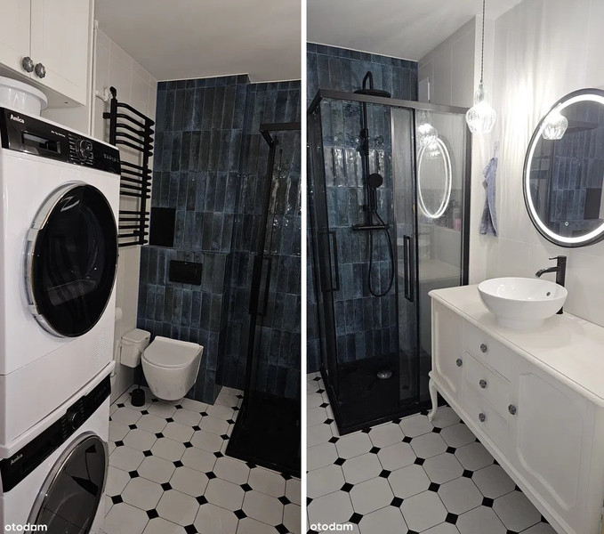 - łazienki z prysznicem wyposażonej w oddzielną pralkę i suszarkę do ubrań oraz dodatkowym ogrzewaniem podłogowym,