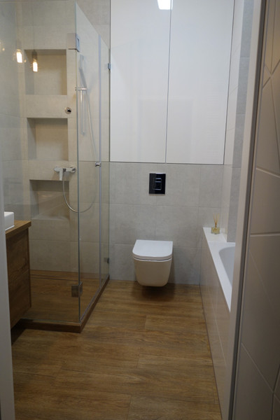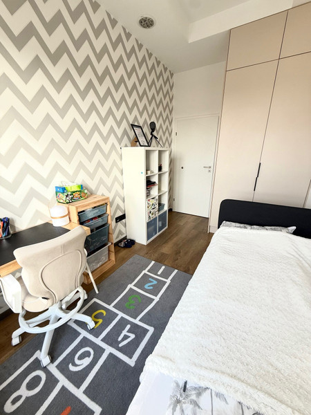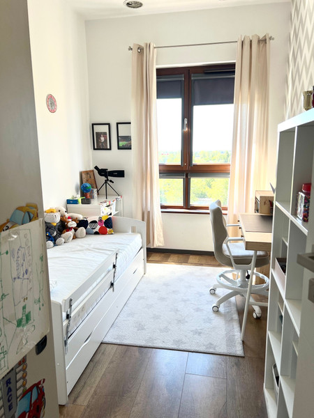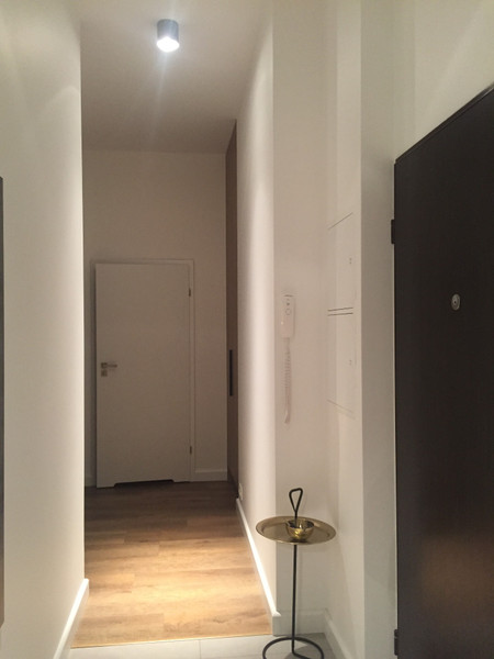 W skład mieszkania wchodzą salon z aneksem kuchennym, osobna garderoba z pralką i suszarką, łazienka i 2 sypialnie. Jak na warunki warszawskiej Woli, mieszkanie jest ciche.