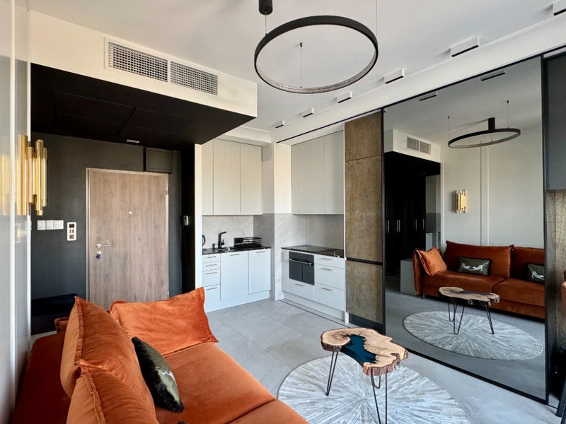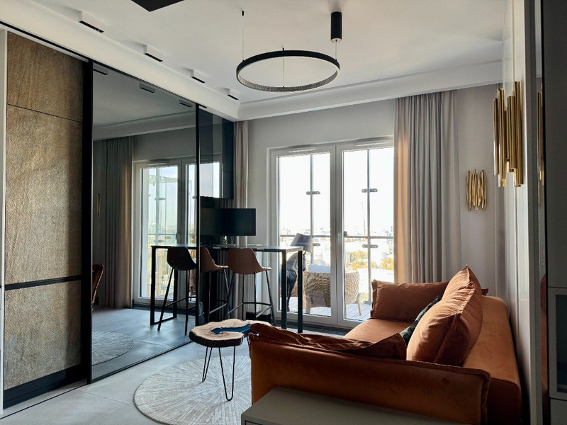 Na sprzedaż nowoczesny i w pełni wykończony apartament 2-pokojowy położony na 22. piętrze prestiżowego budynku. Mieszkanie zostało zaprojektowane przez architekta wnętrz i oferuje wysoki standard wykończenia, pełne wyposażenie oraz unikalne rozwiązania – w tym prywatną saunę na przeszklonej loggii z widokiem na panoramę miasta.