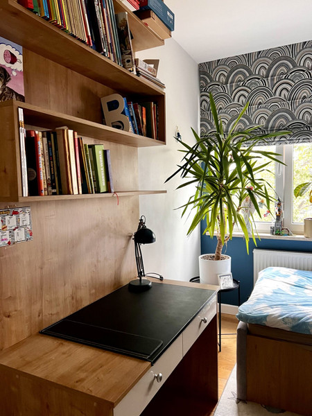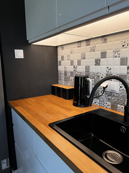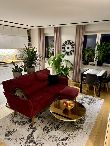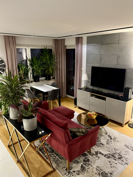 Mieszkanie jest wykończone w wysokim standardzie, z dbałością o każdy detal. Większość mebli wykonano na wymiar przez stolarza. Na podłogach piękny, olejowany parkiet dębowy, który podkreśla naturalne piękno drewna.