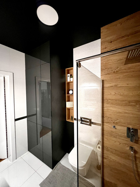 W całym mieszkaniu drzwi bezprzylgowenajwyższej jakości. Wnętrze utrzymane w nowoczesnym, eleganckim stylu – gotowe do wprowadzenia bez dodatkowych nakładów.