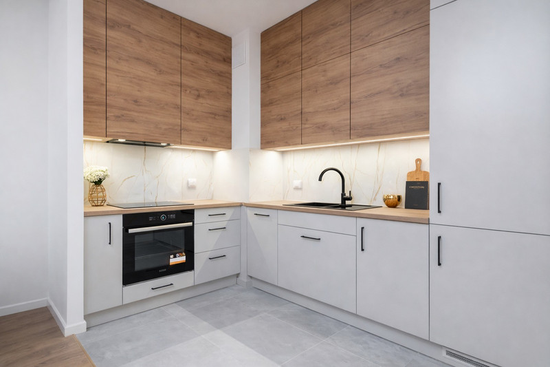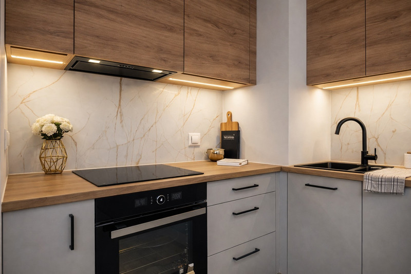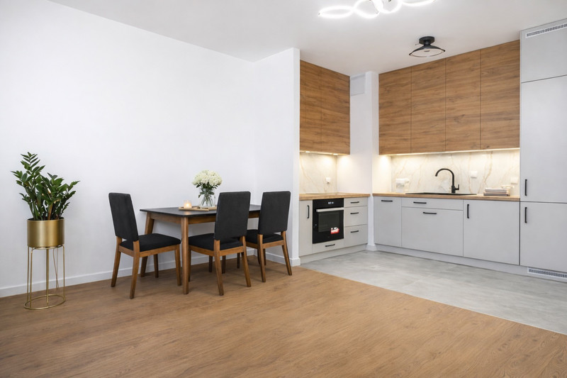 • salon z aneksem kuchennym i wyjściem na balkon