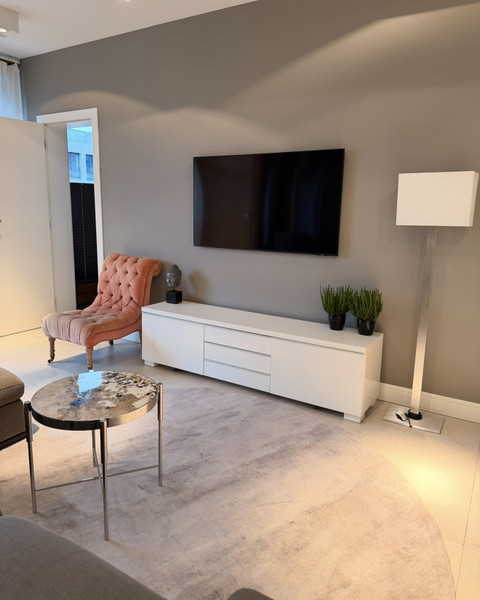 Wnętrze zostało zaprojektowane przez architekta z dbałością o każdy detal. Szlachetne materiały wykończeniowe, spójna kolorystyka oraz subtelne oświetlenie tworzą atmosferę elegancji i komfortu. Apartament jest w pełni umeblowany i wyposażony – gotowy do zamieszkania od zaraz.