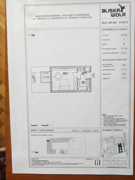 Mieszkanie składa się z jednego pokoju z aneksem kuchennym, łazienką i balkonem. Całość powierzchni mieszkania to 24,3m2 + balkon ok.2,72m2.