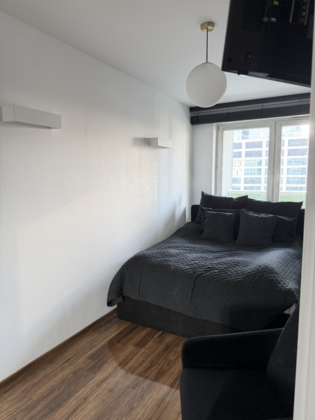 Mieszkanie składa się z salonu z aneksem kuchennym, sypialni, łazienki oraz balkonu. Mieszkanie posiada klimatyzacje. W budynku dostępna jest strefa fitness razem z basenem.