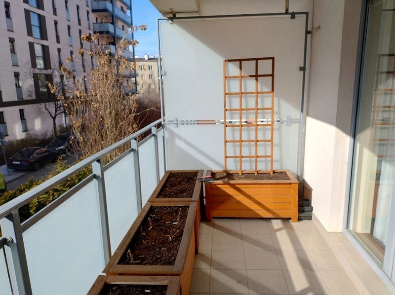 Mieszkanie jest dwustronne, bardzo ustawne i przestrzenne. Ekspozycja okien wschód-zachód zapewnia naturalne światło przez cały dzień oraz dobrą cyrkulację powietrza. Salon z kuchnią wychodzą na zachód, natomiast sypialnia i pokój dziecięcy na wschód, na piękne patio z dużym ogrodem.
