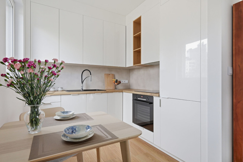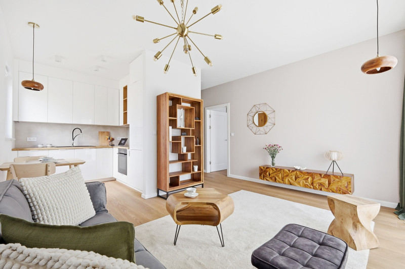 Jasne, pełne światła mieszkanie o ekspozycji południowo-zachodniej jest gustownie i bardzo starannie wykończone. Zastosowano w nim m.in. wysokojakościowe produkty marek Bosch, Kronenbach, Grohe, Kludi, Kaldewei, Invicta, My Bed i Barlinek. Wyposażenie obejmuje meble z litego drewna oraz meble tapicerowane z wysokiej jakości tkanin. Kuchnia widna z oknem. Winda, Balkon (5,6m²). Wysokość pomieszczenia w mieszkaniu to 275 cm. Miesięczny czynsz wynosi 517 PLN (11,25PLN/mkw.).