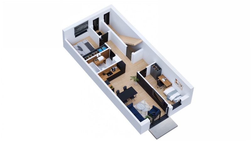 Dostępne także mieszkania na piętrze (osobne wejście, balkon, strych nie wliczony do powierzchni)