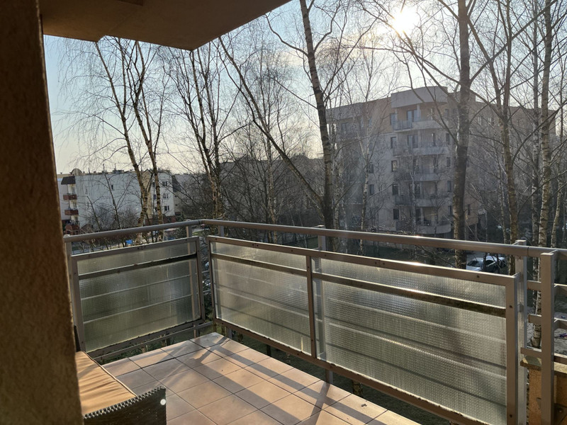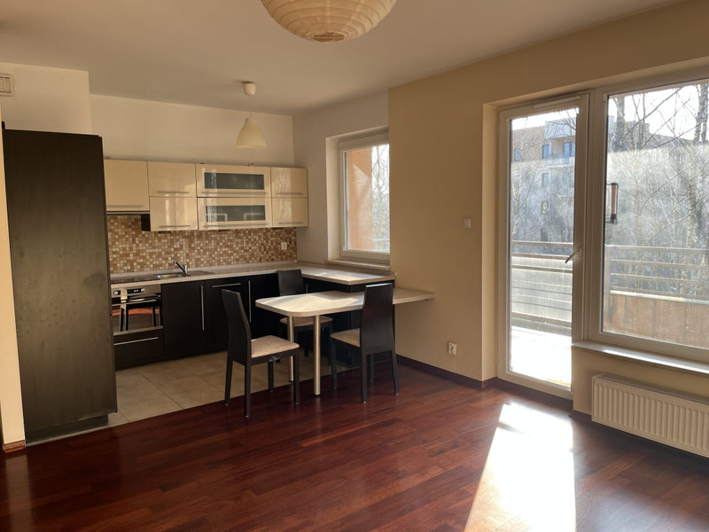 Lokal położony jest na zamkniętym ogrodzonym osiedlu wybudowanym w 2008 roku i składa się z przestronnego salonu z aneksem kuchennym (28,80m2), przedpokoju (4,60m2), łazienki (3,95m2) i sypialni (9,95m2). Powierzchnia balkonu to 14,20 m2. Mieszkanie, jest bardzo widne z uwagi na duże panoramiczne okna, z widokiem na brzozowy lasek znajdujący się wewnątrz osiedla.