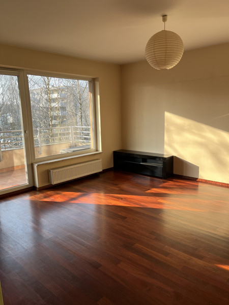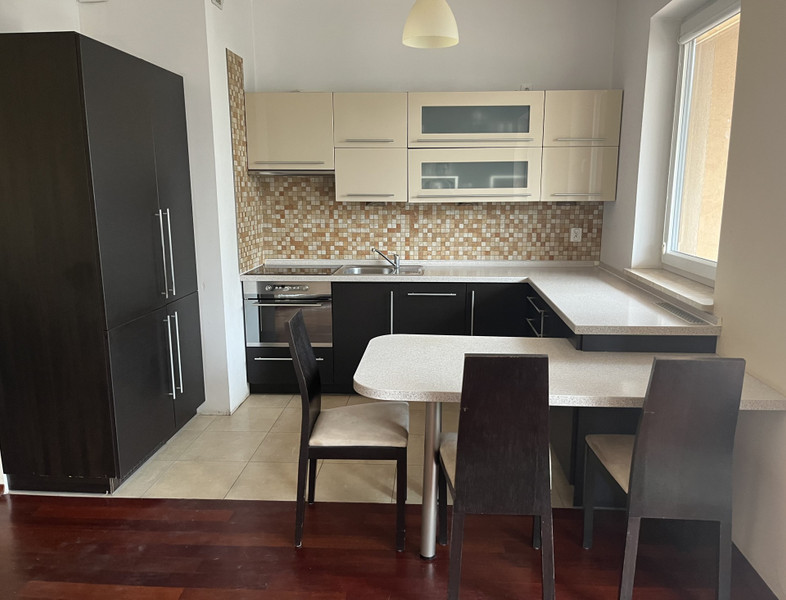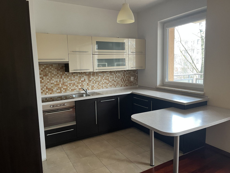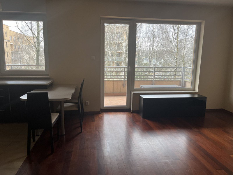 Mieszkanie jest w bardzo dobrym stanie technicznym. Na podłodze w salonie położona jest deska drewniana Merbau, a w sypialni parkiet dębowy. Na pozostałych podłogach jest położony hiszpański gres. W mieszkaniu znajdują się dwie pojemne szafy wbudowane (w przedpokoju oraz w sypialni), a także zabudowa kuchenna Ikea. Kuchnia wyposażona jest w lodówkę, zmywarkę, płytę grzewczą oraz piekarnik. Ogromnym atutem mieszkania jest bardzo duży, ustawny balkon o powierzchni 14,20m2.