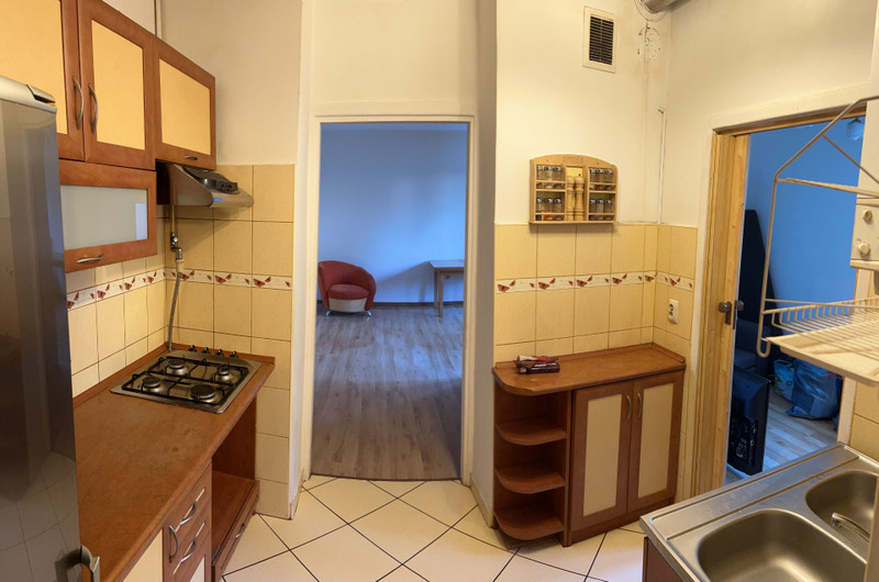 Mieszkanie posiada bardzo wygodny i praktyczny układ. Aktualnie składa się z dwóch pokoi – pierwotny aneks kuchenny został przekształcony w osobne pomieszczenie, dzięki czemu lokal zyskał dodatkowy pokój.