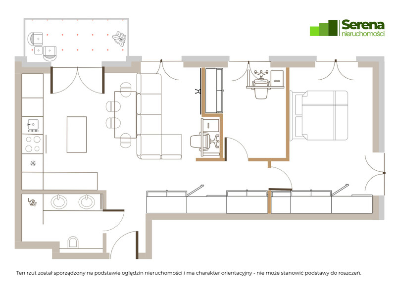 Właścicielem ogłoszenia wraz z jego elementami jest Serena Nieruchomości NIP5361683767 lub podmioty współpracujące. Wszelkie prawa zastrzeżone. Kopiowanie, rozpowszechnianie oraz korzystanie z niniejszych materiałów w jakikolwiek sposób wykraczający poza dozwolony użytek (ustawa z 4 lutego 1994 r. o prawie autorskim i prawach pokrewnych) bez pisemnej zgody Serena Nieruchomości jest zabronione i może stanowić podstawę odpowiedzialności cywilnej oraz karnej. Materiały te stanowią tajemnicę przedsiębiorstwa w rozumieniu ustawy z dnia 16 kwietnia 1993 r. o zwalczaniu nieuczciwej konkurencji.