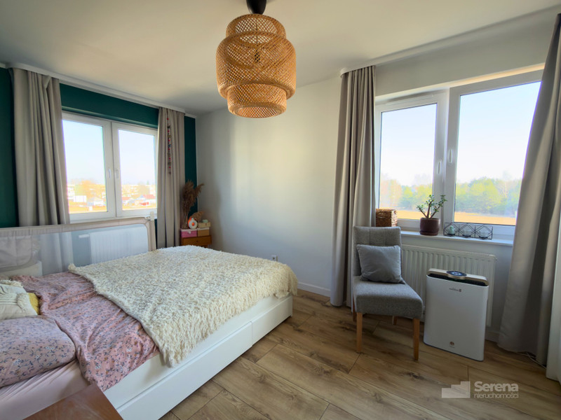 - sypialnia master (ponad 15 m²) z dużą szafą i dwoma oknami, z których jedno wychodzi na wschód a drugie na północ