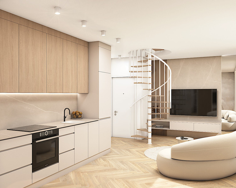 Mieszkanie znajduje się na piętrze : salon z aneksem kuchennym i łazienka - ok 34m2