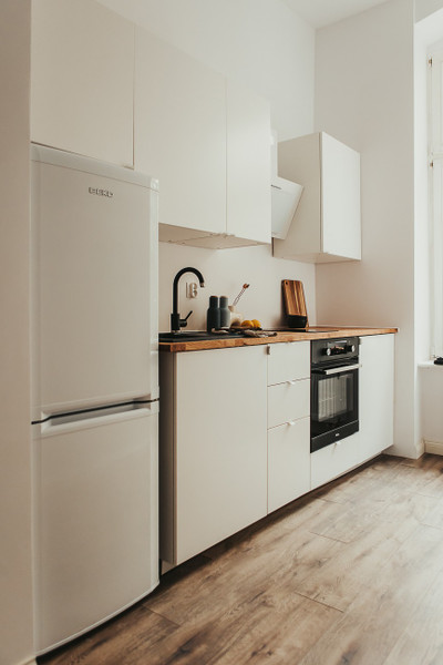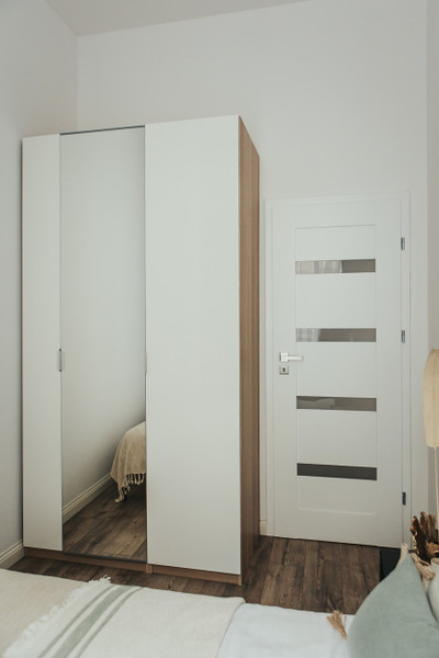 Mieszkanie jest zaledwie kilka lat po generalnym remoncie, wykończone w spójnym, skandynawskim stylu: jasne ściany, drewnopodobne podłogi, czarne dodatki, nowoczesne oświetlenie. Parter w oficynie zapewnia prywatność i ciszę, a jednocześnie w kilka minut dojdziesz pieszo na Stary Rynek, dworzec czy uczelnie.