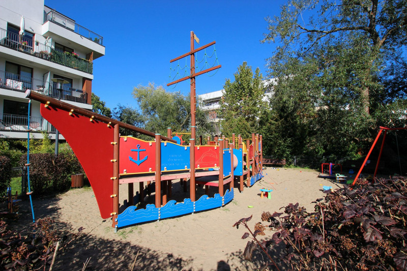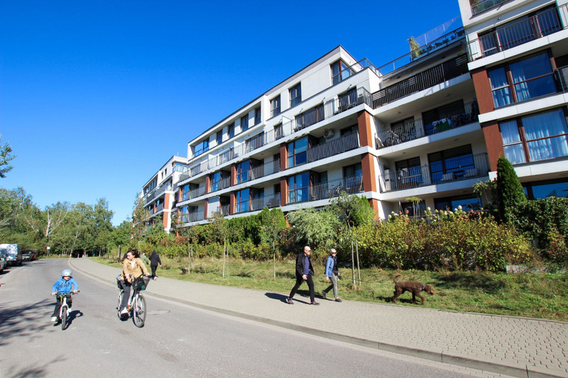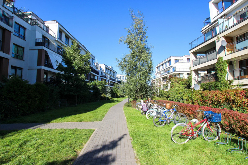 Mieszkanie mieści się na pierwszym piętrze 4-piętrowego budynku z 2013 roku. Budynek o dobrym standardzie wykończenia, otoczony starannie utrzymaną zielenią, zadbane części wspólne. O bezpieczeństwo mieszkańców dba monitoring i ochrona.