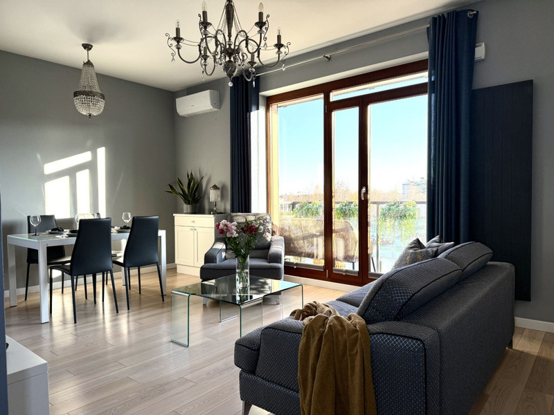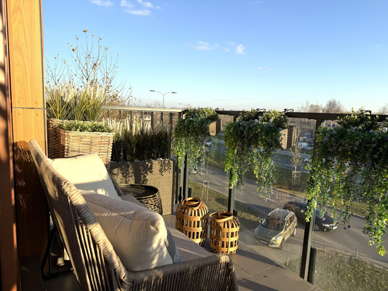 • Balkon, klimatyzacja, designerskie oświetlenie, eleganckie meble — tutaj każdy detal tworzy spójny efekt.